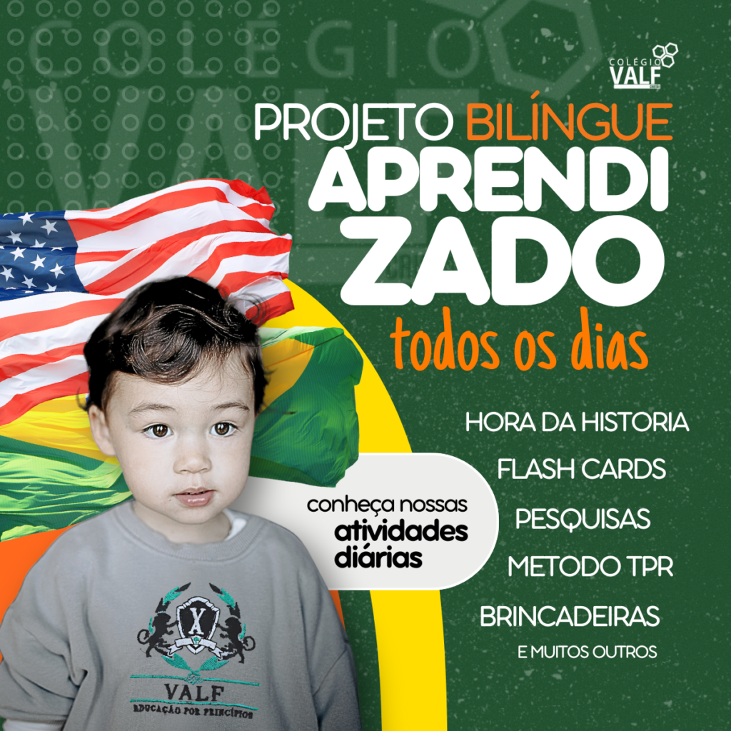 O projeto bilíngue incentiva o desenvolvimento da mente bilíngue desde a primeira infância, utilizando recursos visuais, o método espiral e o método fônico.